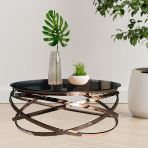 The Tobyn Coffee Table features a classic grey tempered glass that is a beautiful contrast against the rose gold stainless…