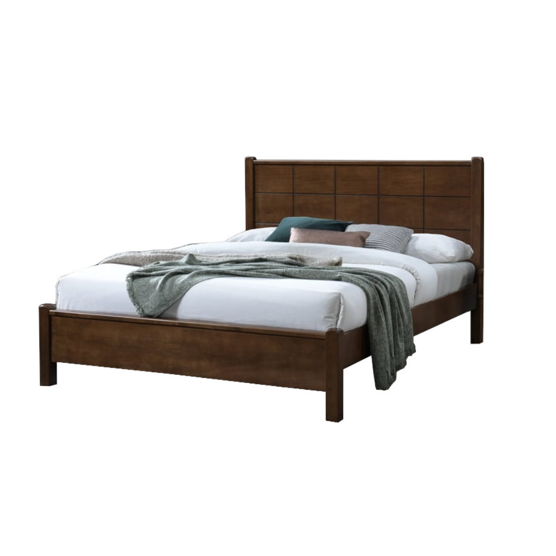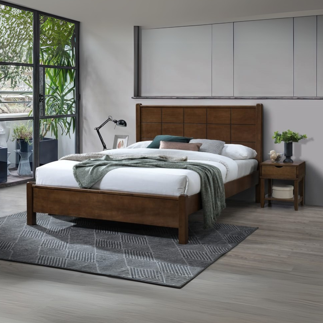 Discover the balance of style, comfort, and craftsmanship with Bailey Wooden Bed Frame — where modern design meets everyday functionality. The sleek silhouette and rich walnut finish add warmth and sophistication. The bold panel headboard with grid detailing brings contemporary flair, while the sturdy wooden frame ensures durability. Bailey blends seamlessly with minimalist, rustic, or modern décor.