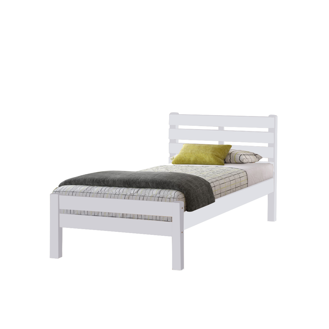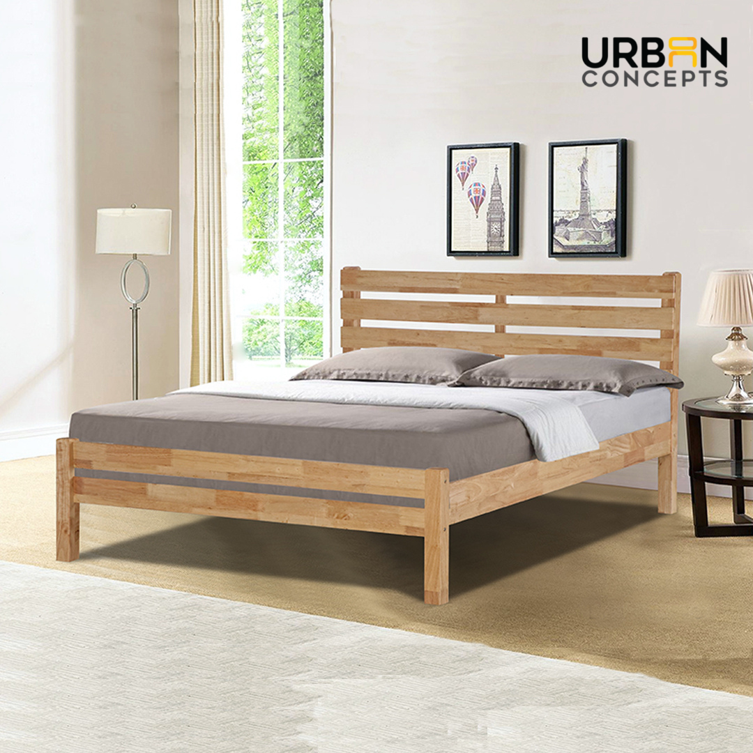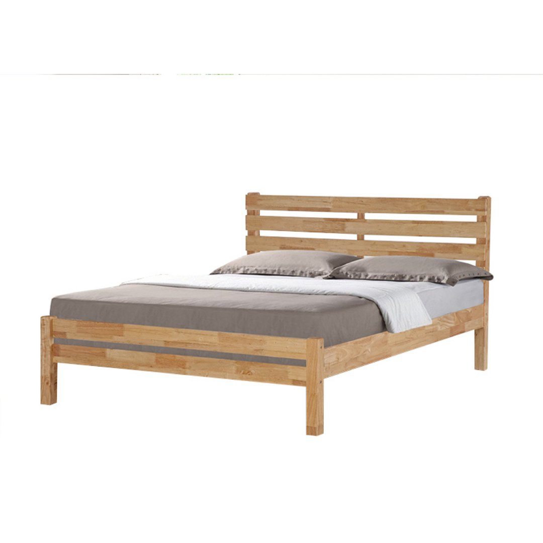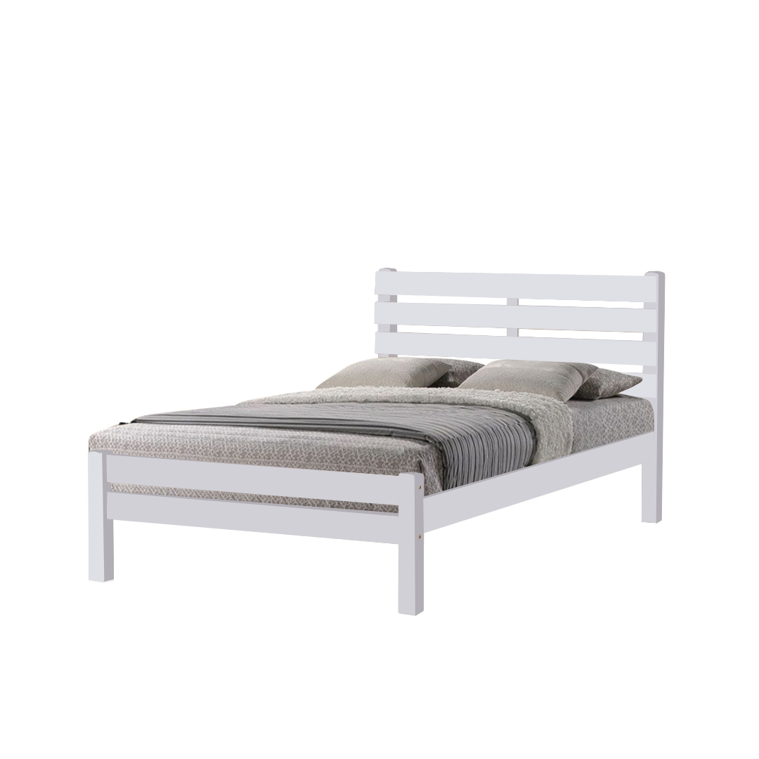 Introducing the Brazen bed frame that complements any bedroom decor with its clean and casual look. It features a wooden slatted headboard, and low-profile footboard, and is crafted with solid rubberwood and MDF side rails. You can choose from two colors: white and natural.