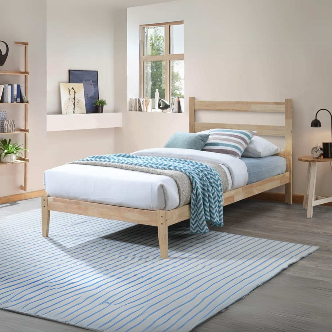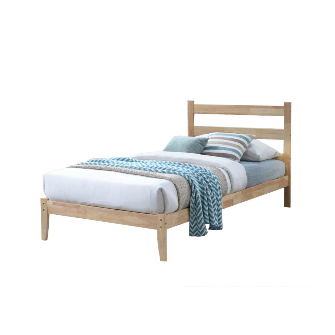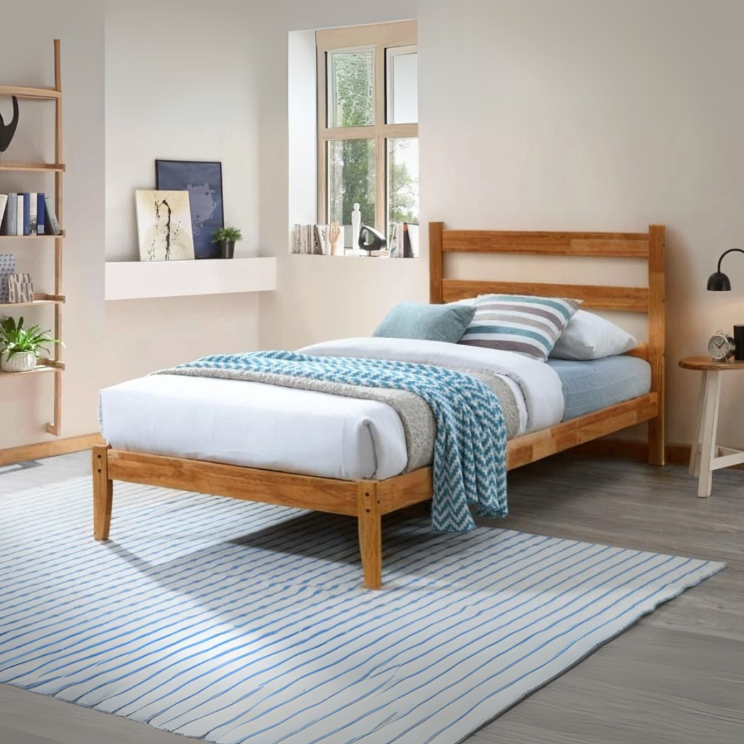 Upgrade your bedroom with the Brianna Single bed frame, a perfect mix of simplicity, durability, and modern charm, ideal for guest rooms or personal havens. Crafted from high-quality solid wood, it offers sturdy support and lasting reliability, featuring a slatted headboard for a contemporary touch, clean lines, and subtle grain patterns for a natural look.