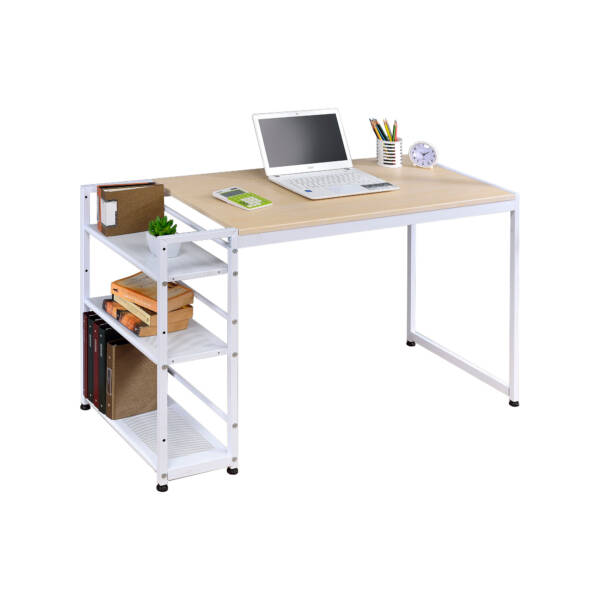 - The beech wood color gives the desk a warm and inviting feel, while the white coating of the main frame adds a touch of modernity.