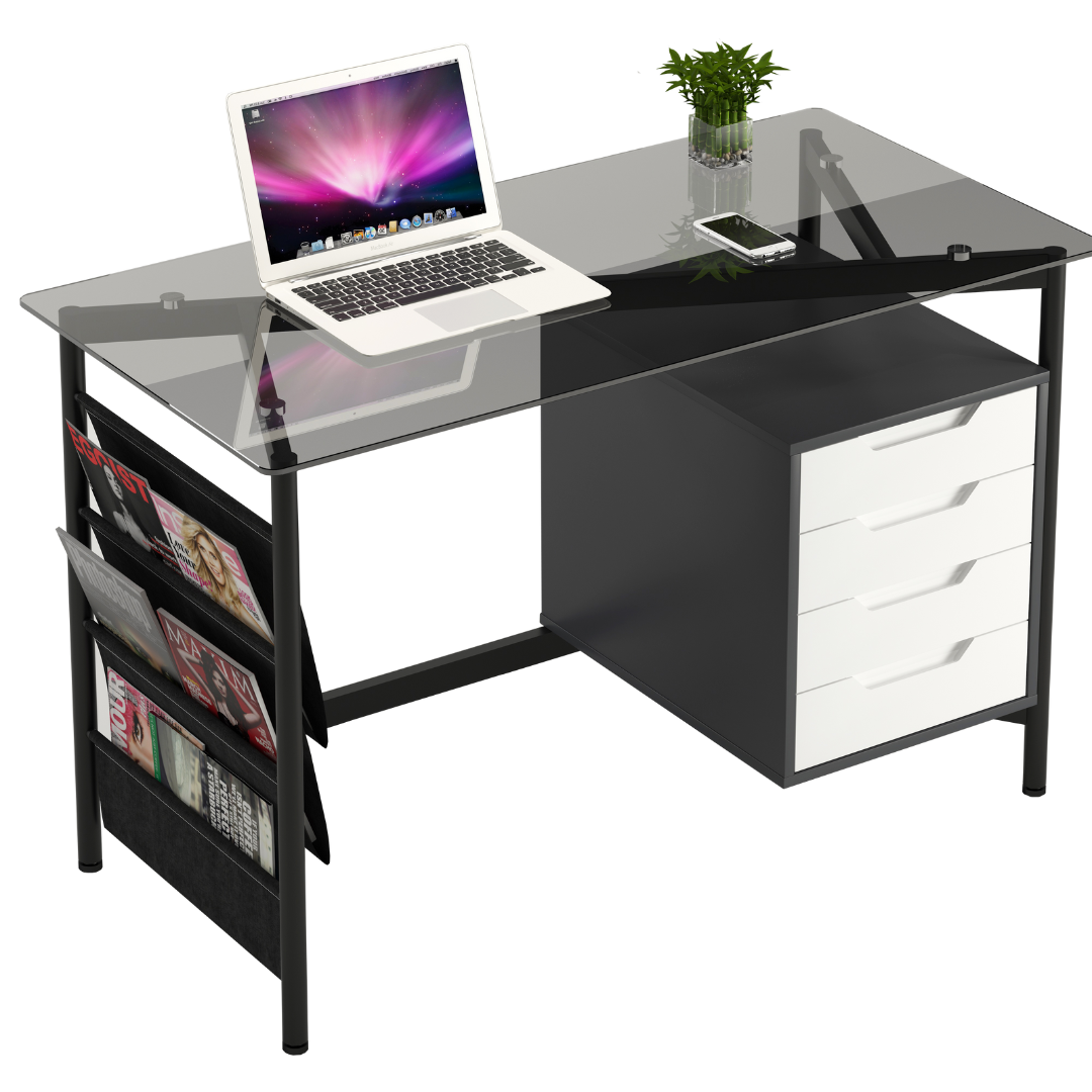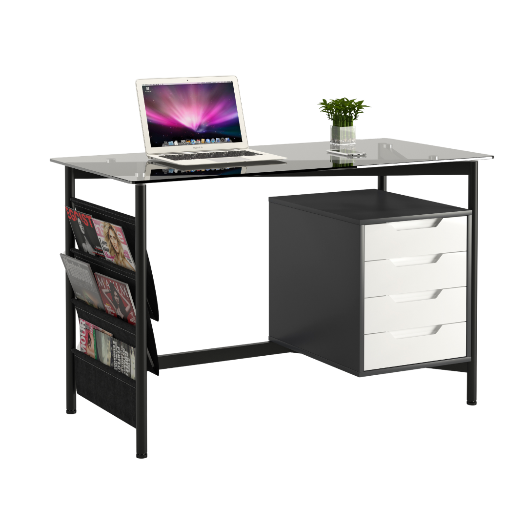 - Integrated Drawer Unit: Four spacious drawers with minimalist white fronts provide ample storage to keep your essentials organized and your workspace clutter-free.