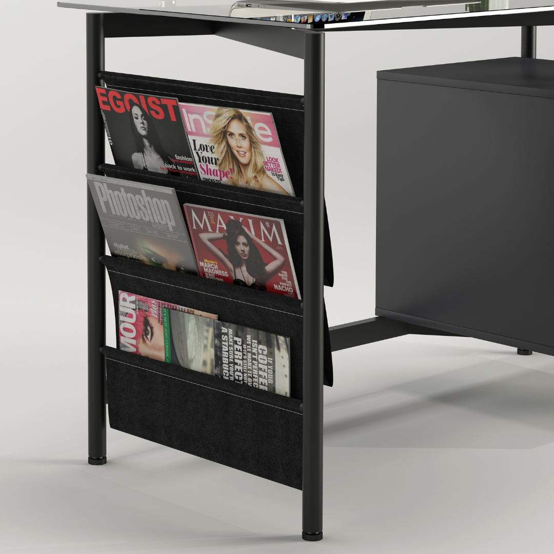 - Side Magazine Rack: A built-in fabric magazine holder keeps reading material, folders, and documents within arm’s reach—perfect for multitaskers and design lovers alike.