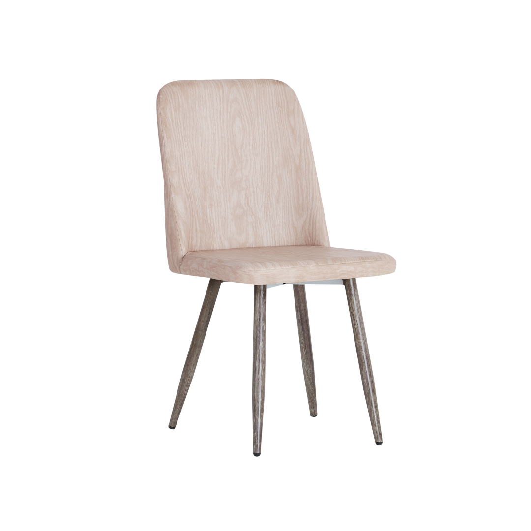 - The wood grain legs of the chair match those of the table, creating a cohesive look throughout the dining set.