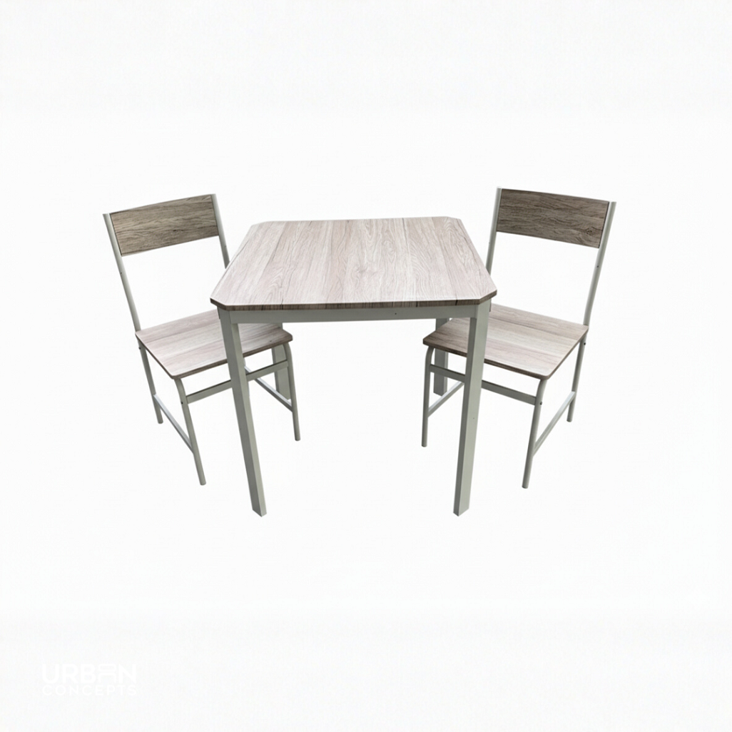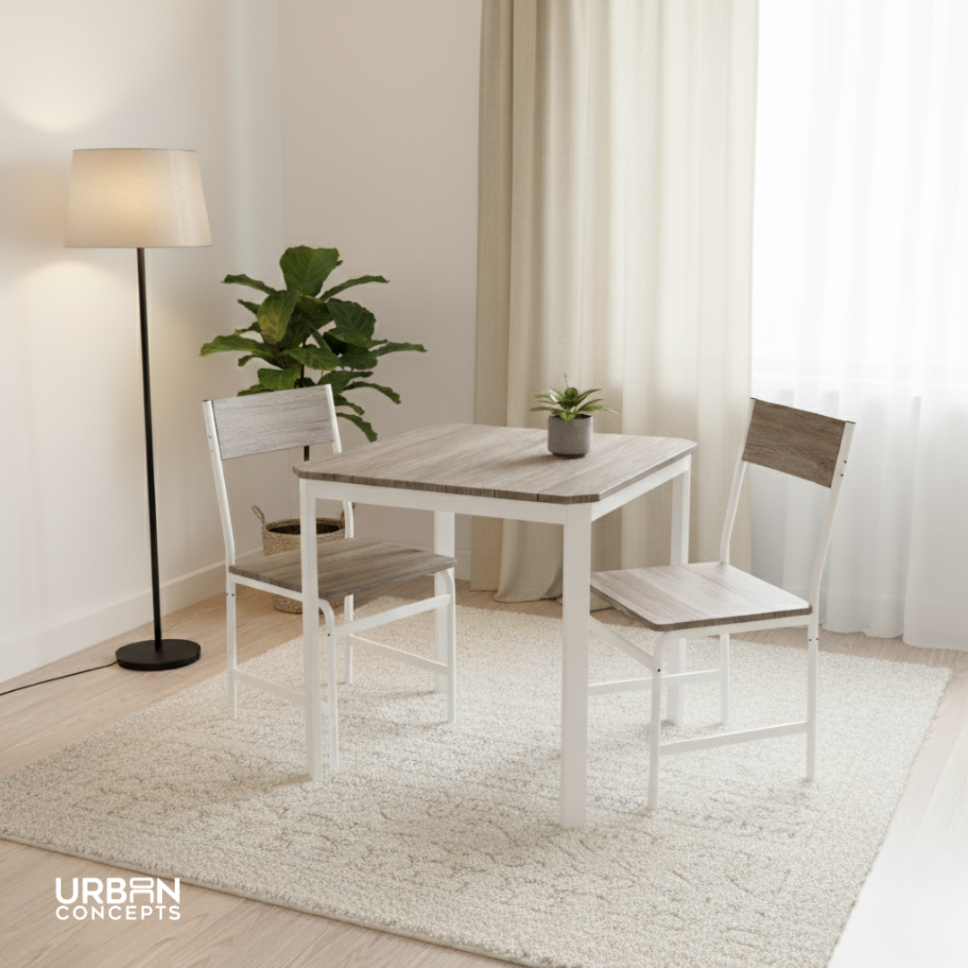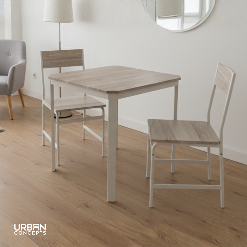 Elevate your small-space dining experience with the Dash Breakfast Dining Set — a compact and stylish solution perfect for condos, apartments, studio units, or cozy dining corners. Featuring a clean and modern Scandinavian-inspired look, this set combines natural wood tones with sleek white metal framing to create a light, airy feel in any room.
