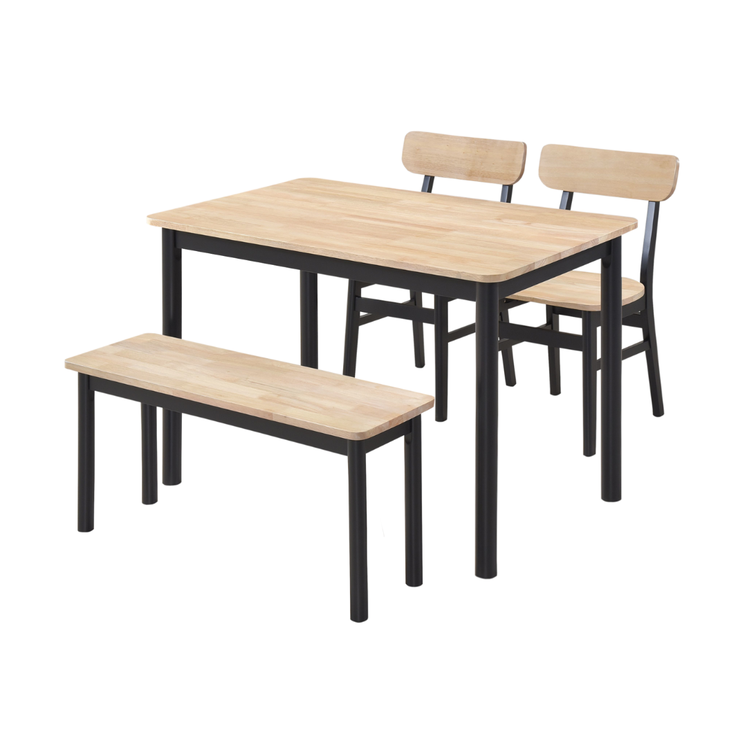 Introducing the Dawn Dining Set with Bench! This versatile and stylish set is perfect for small spaces, with a spacious wooden table, two chairs, and a bench that comfortably seats four. The sturdy solid wood frame can support significant weight while still maintaining an elegant appearance. Whether you’re dining, working, or studying, this set is the perfect fit for modern living. Plus, it’s easy to assemble and clean. Enjoy the convenience and style of the Dawn Dining Set with Bench today!