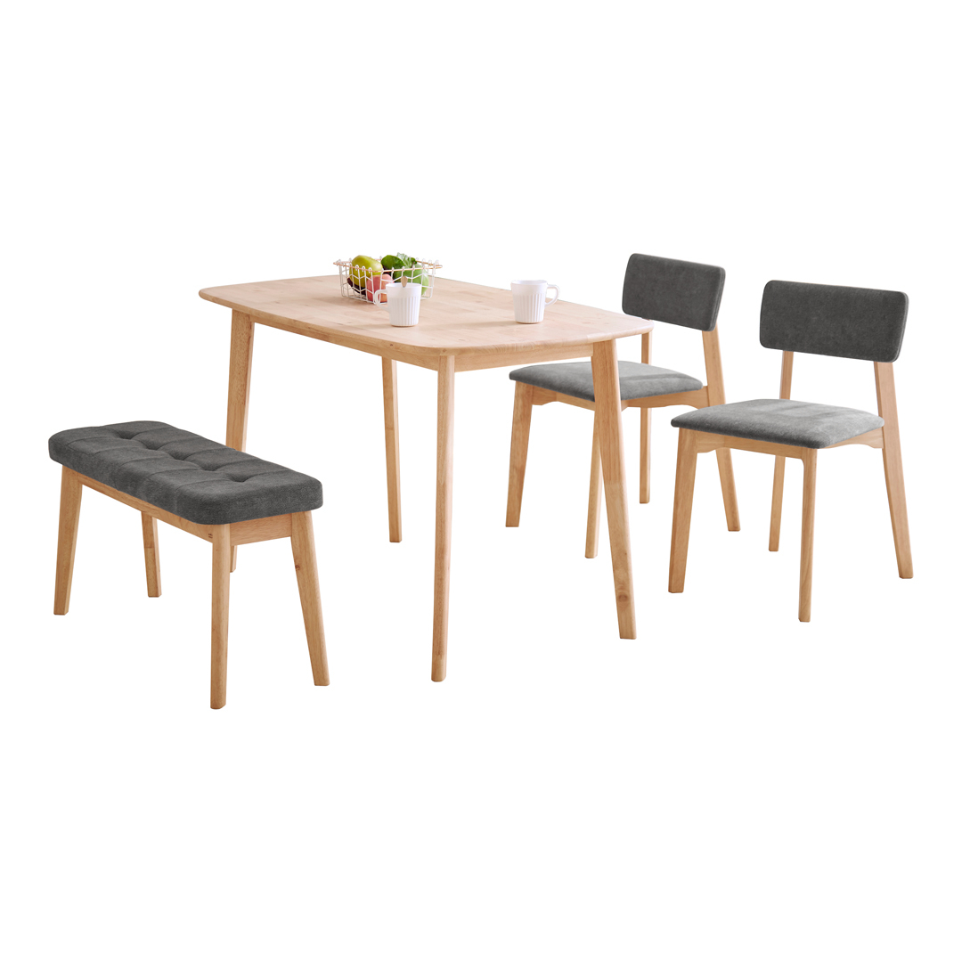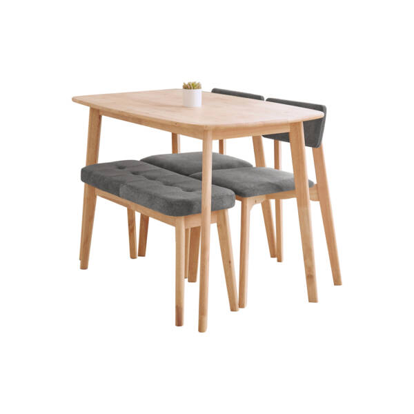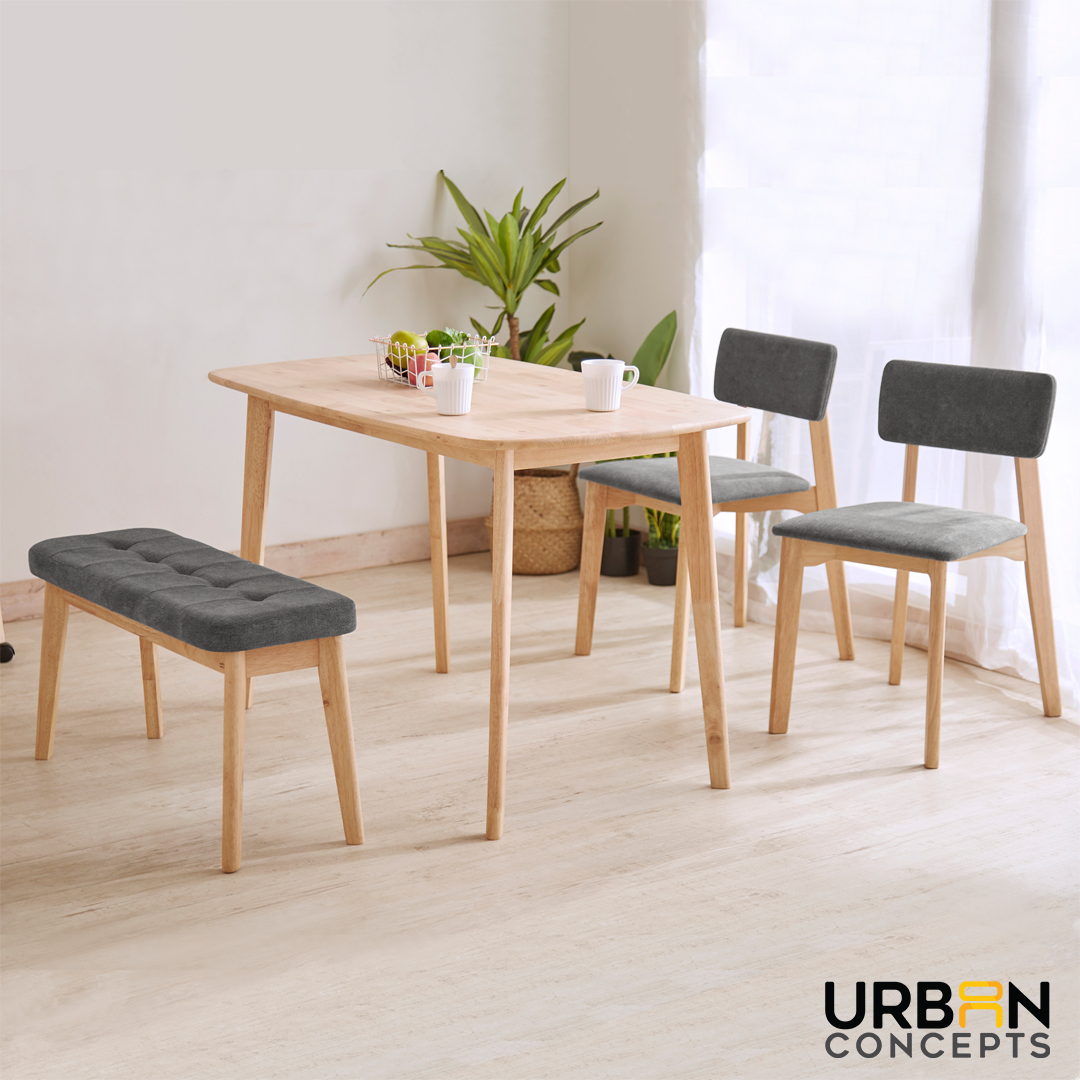 - Materials: Rubber wood with Natural wood knot Bench and Chair regular foam with fabric