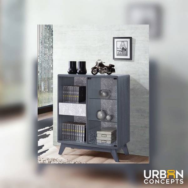 The Rahma display cabinet showcases the marriage of elegance and beauty: with 2 glass shelves, 1 cabinet and a white back board, this piece is both mobile and eye-catching. House your memorabilia in style with this timeless piece.