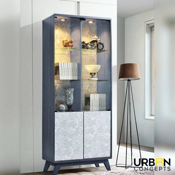 The Reika display cabinet showcases the marriage of elegance and beauty: with 4 glass shelves, 2 drawers and a decorative back board, embellish your living room with this timeless piece.