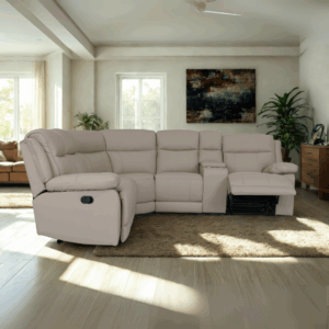 An L-shape sofa inside a condo? Yes you can with the Saudrin sofa. It comes in a unique polka-dot pattern and a bold blue, with a wooden headboard to hold mugs and pillows for an enjoyable movie night! Pair this set with the Seneca bench and play with various configurations.