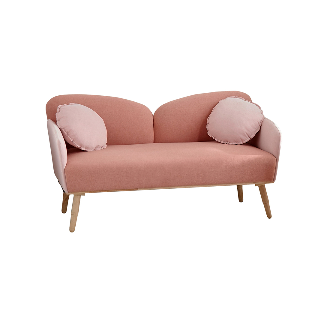 Experience the luxurious softness of the Scarlett sofa, upholstered in velvety fabric and available in beautiful, soft peach and flamingo shades. Perfect for small rooms or condos, this sofa comes in a small size and features natural wood-colored legs. Choose between the 1-seater or 2-seater option to fit your specific needs.