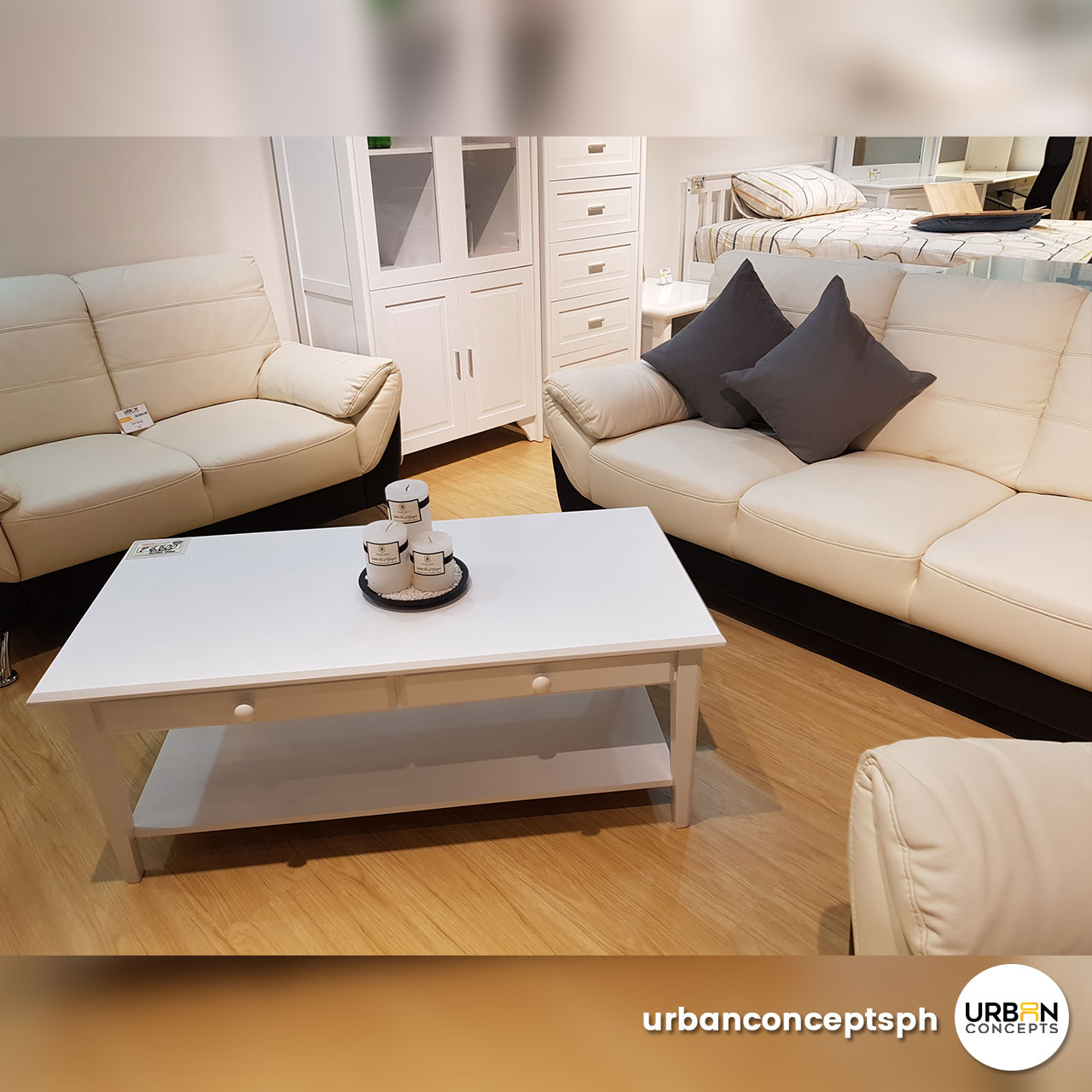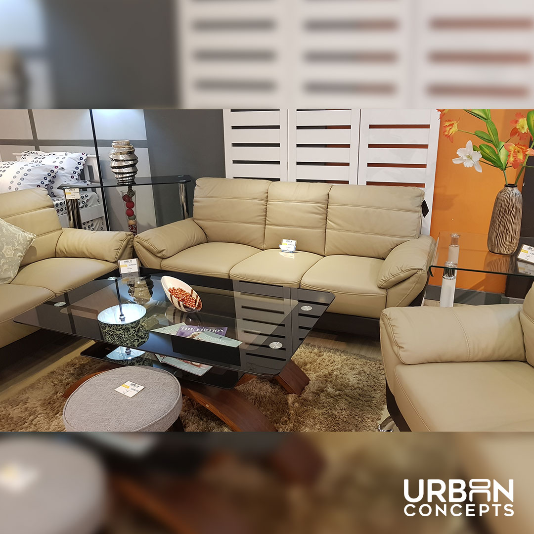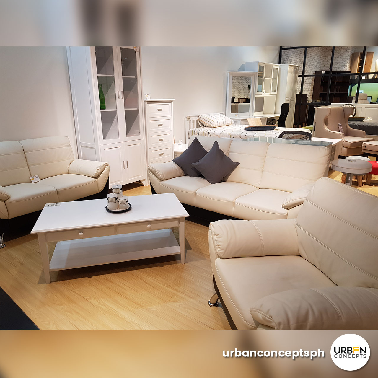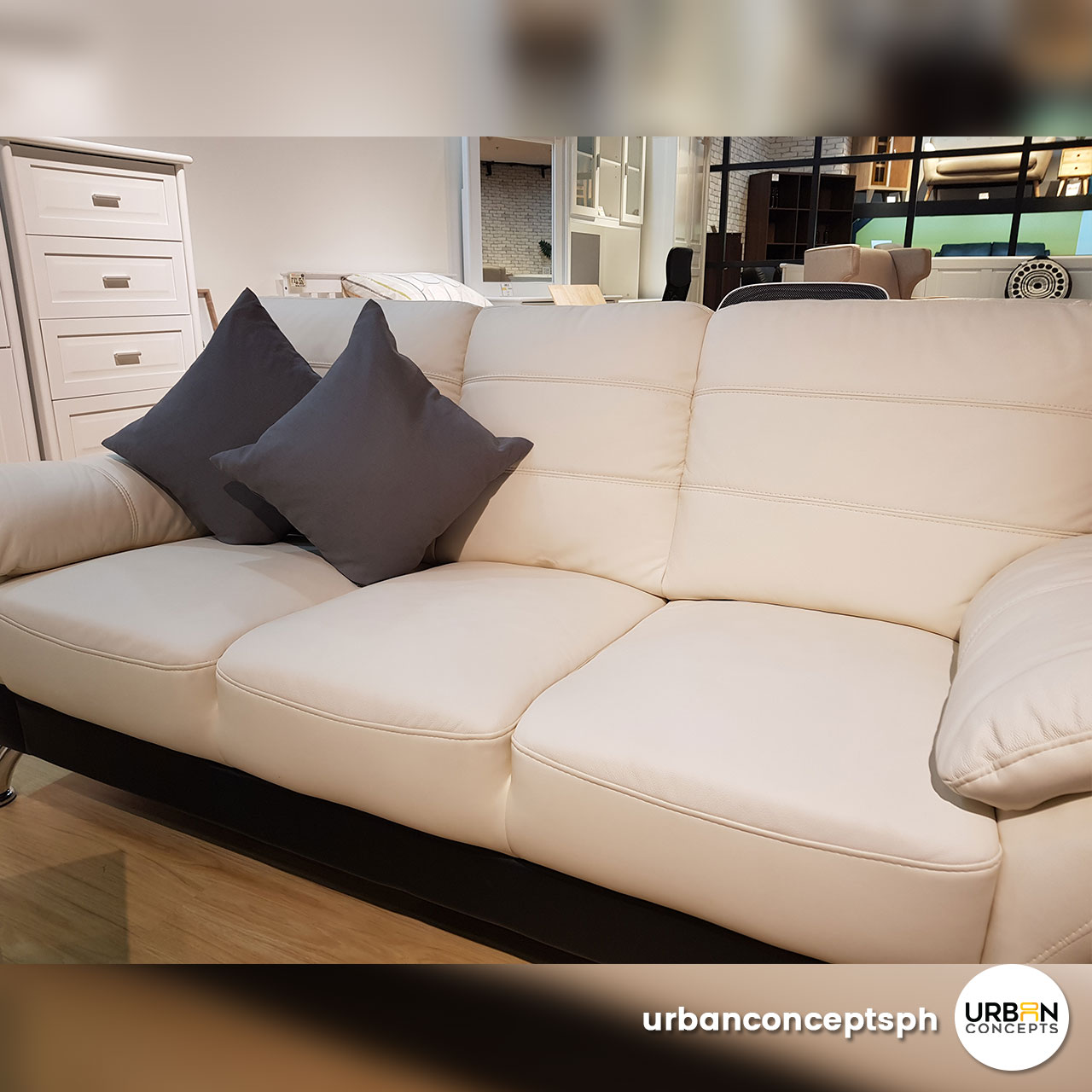 This Shelley sofa set is a 1+2+3-seater sofa set made from the finest leather and high-quality workmanship. The cushions are soft and easy to clean despite the color, and the legs are made of sturdy metal with a chrome finish. Who says condos are too small for sofa sets? This compact sofa set is perfect for any space size.