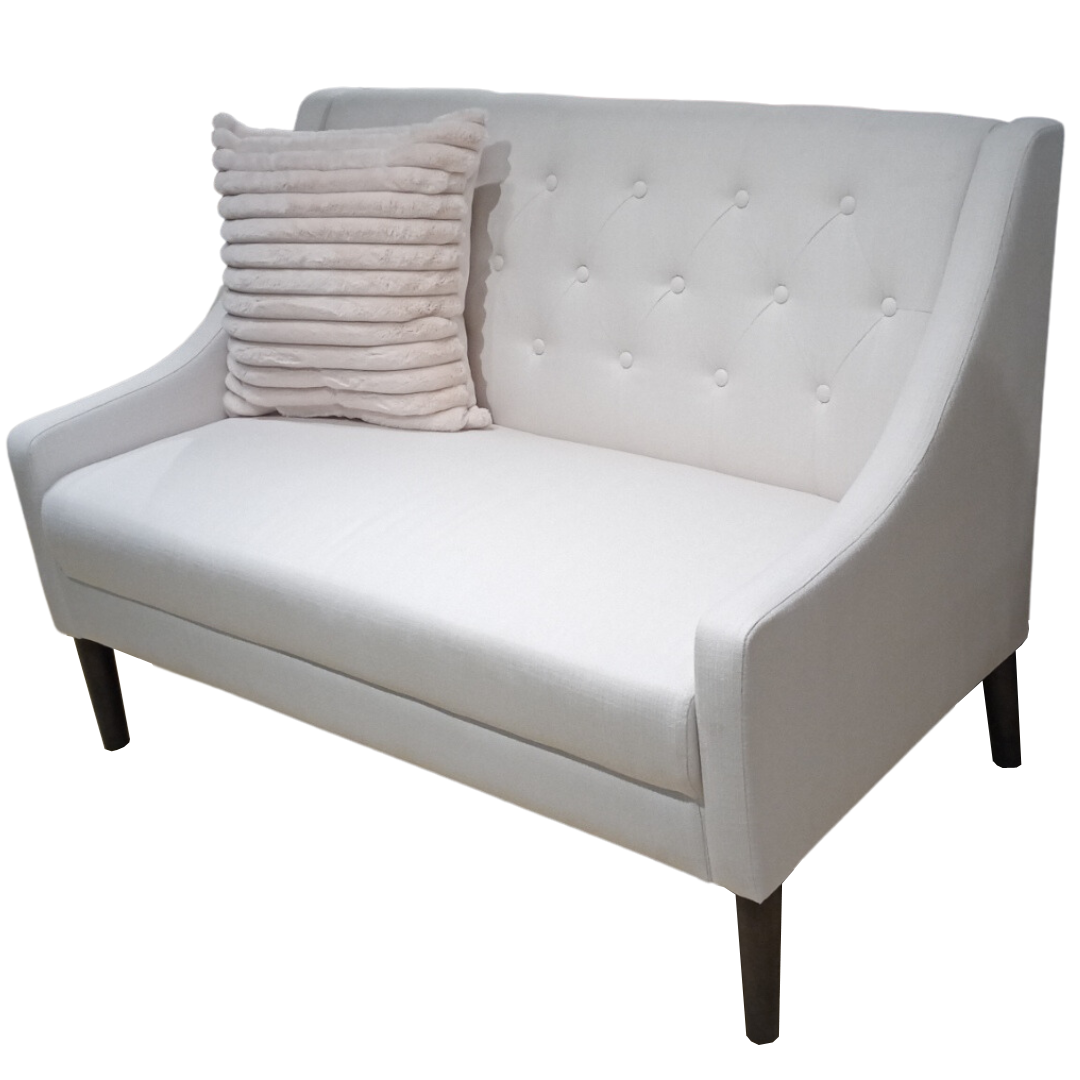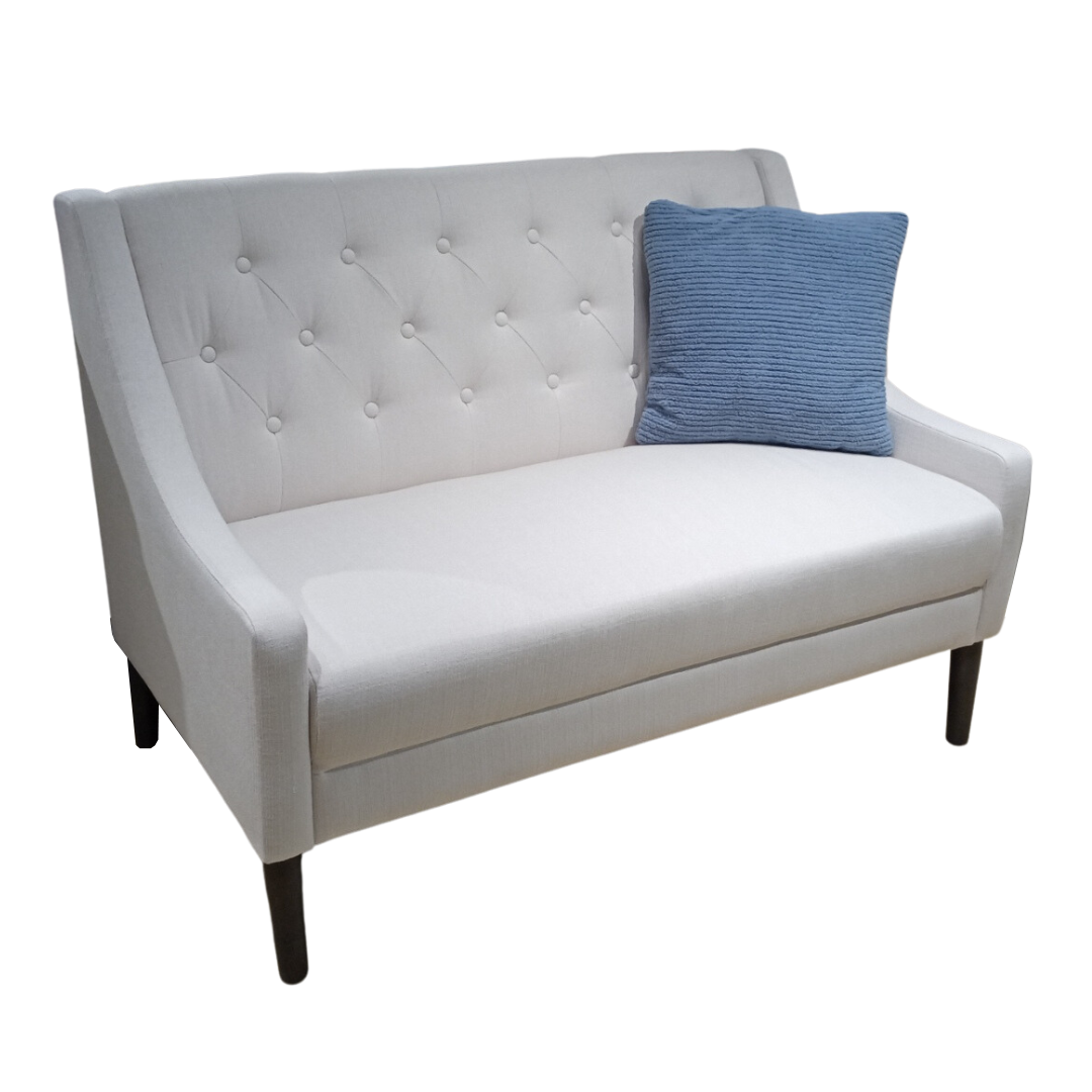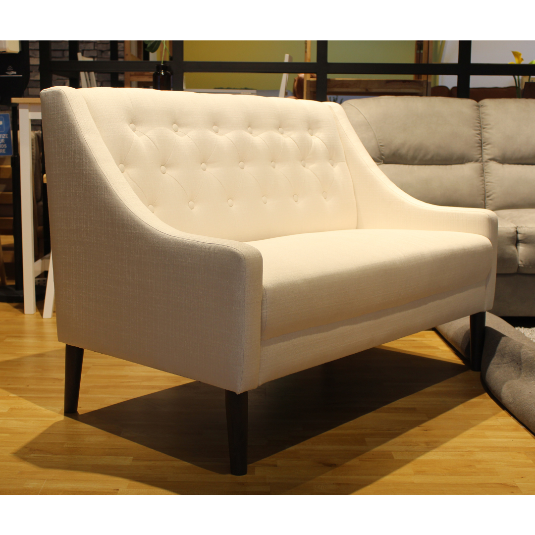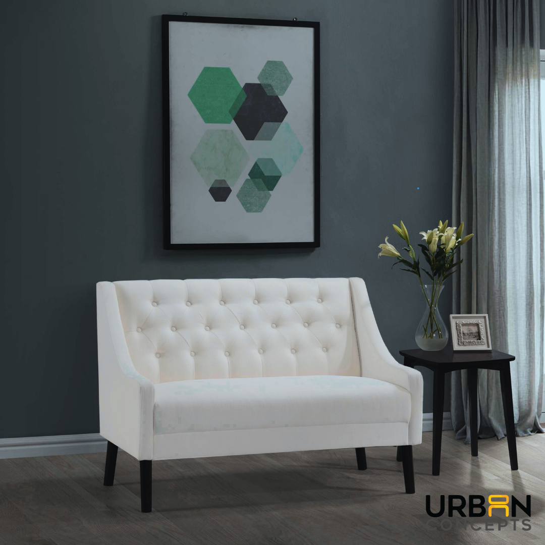 The Snow Sofa is a fashionable and functional that is perfect for small living spaces such as apartments or condos. Its ivory-colored textured fabric upholstery, solid rubber wood legs, and tufted button backrest make it versatile and able to complement any décor.