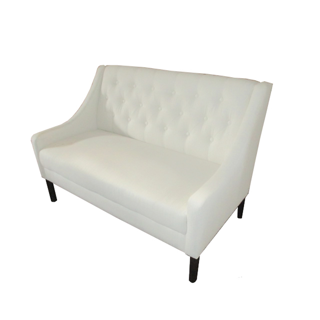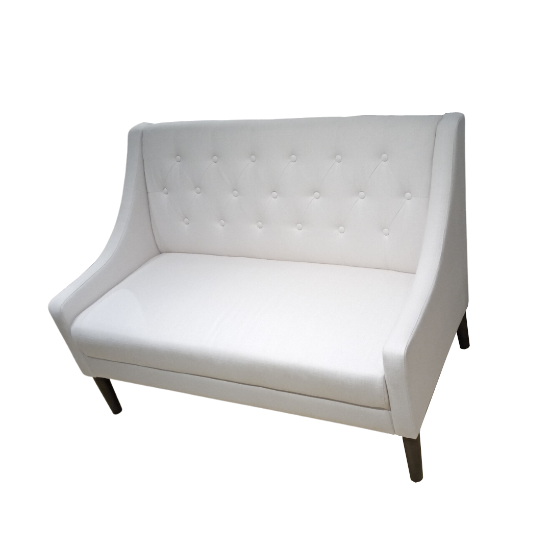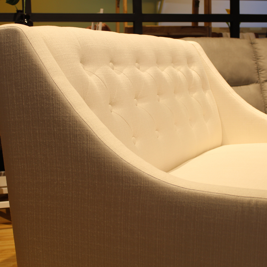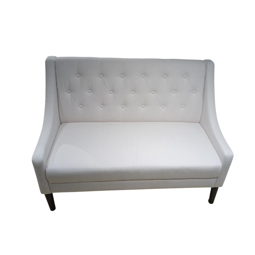 The Snow Sofa is a fashionable and functional that is perfect for small living spaces such as apartments or condos. Its ivory-colored textured fabric upholstery, solid rubber wood legs, and tufted button backrest make it versatile and able to complement any décor.