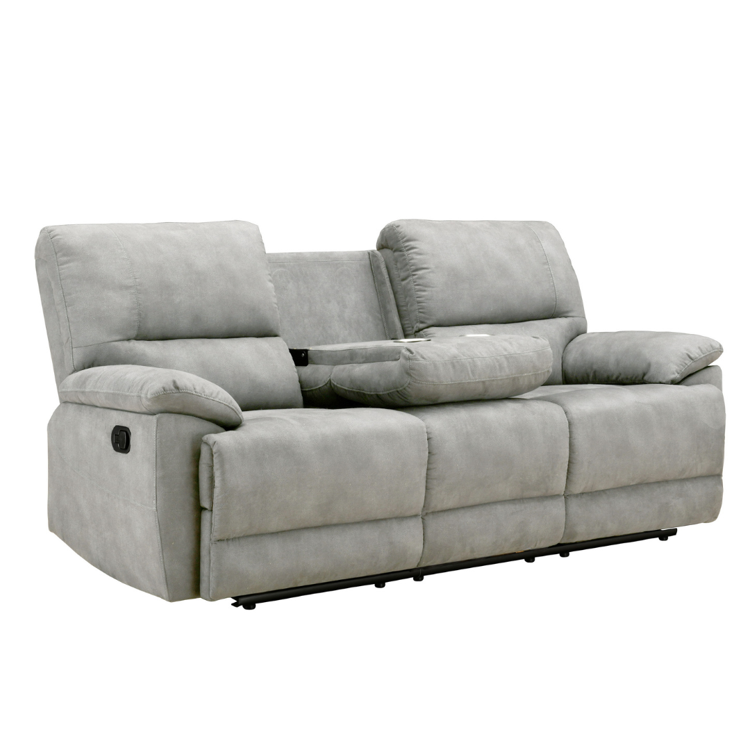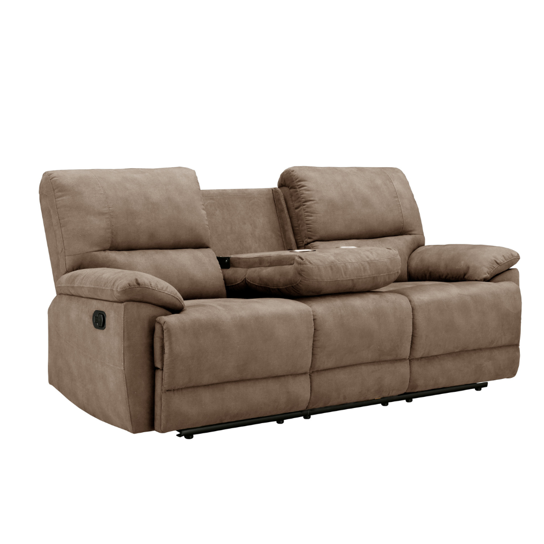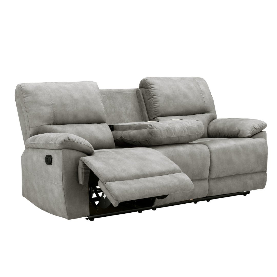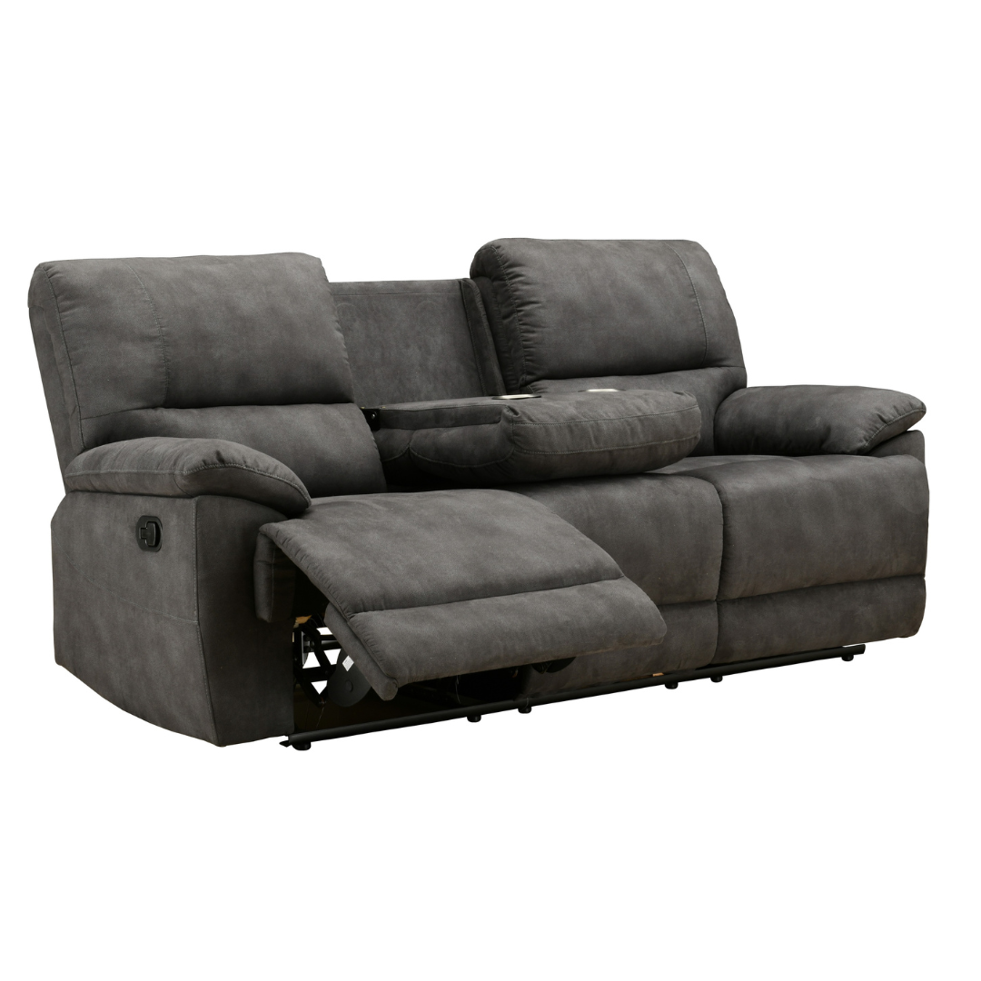Relax in style with the Sterling Recliner Sofa. This sofa offers various reclining positions that promote relaxation. Additionally, the center seat back can be pulled forward to serve as a table, while integrated cup holders ensure that your drinks and snacks are within reach.