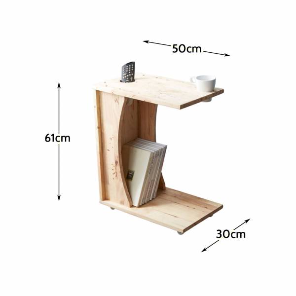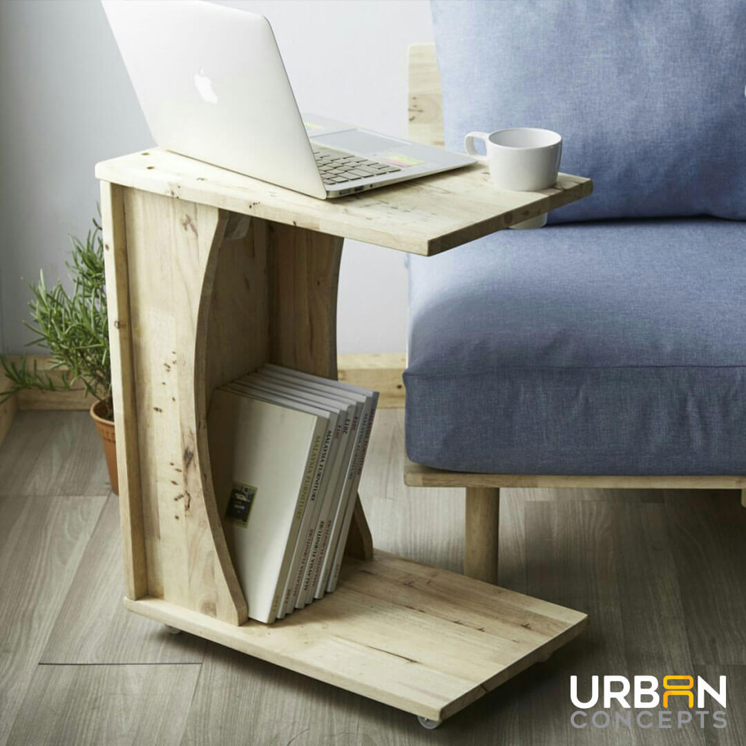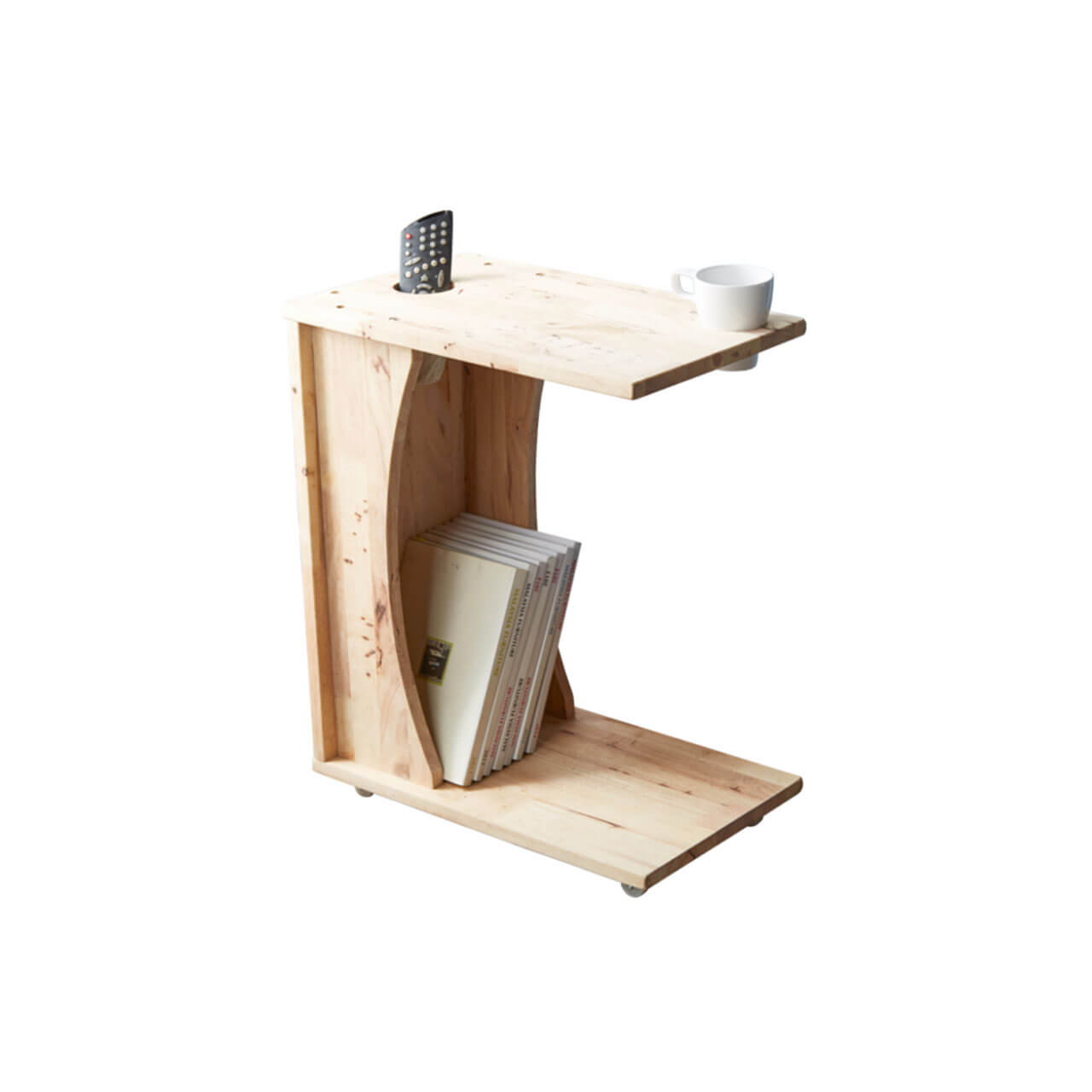 The Talbot side table has wheel legs, allowing it to be freely movable. The top shelf also has holes for cups and pen dispensers, and its shape allows it to seamlessly fit sofas. This item is a great addition to busy homes or small offices as they conveniently transform one side of a couch into a table.