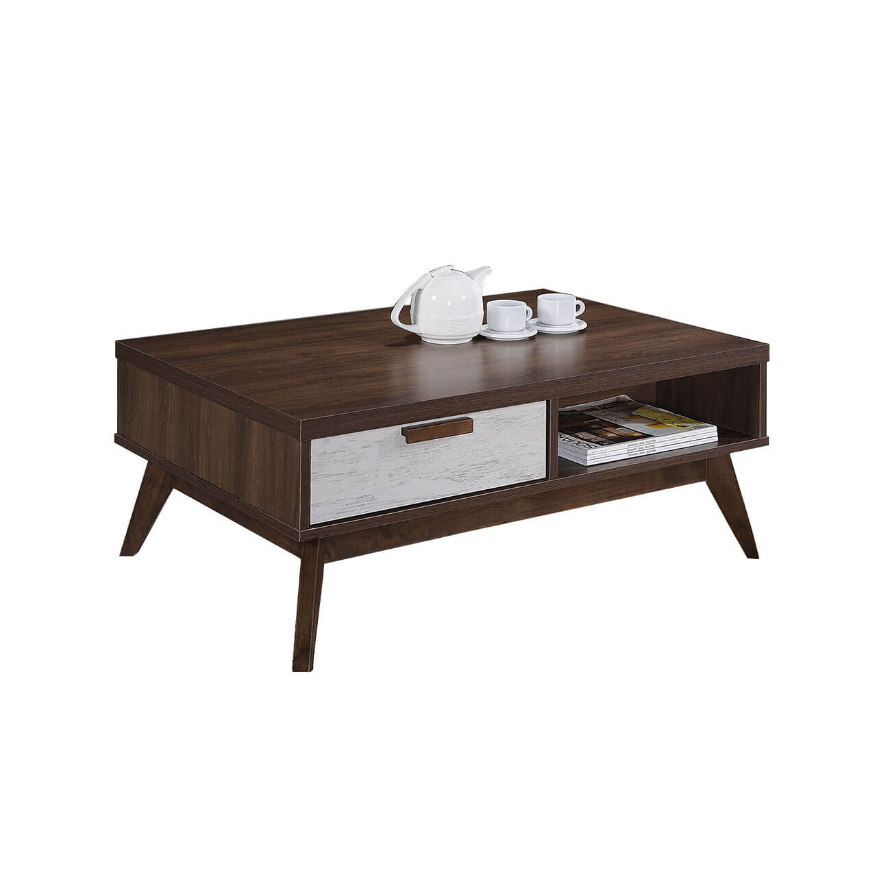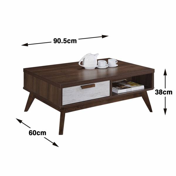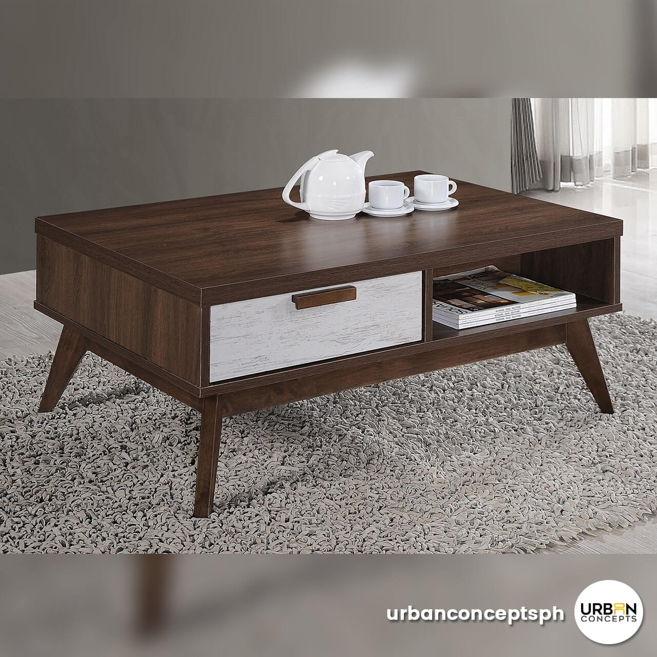 The Tevin center table is part of our Haley collection characterized by squarish sides and a boxy aesthetic, in full brown & white textured boards. This center table comes with 1 drawer and 1 shelf to hold your living room essentials. Who says you have to compromise functionality for style?
