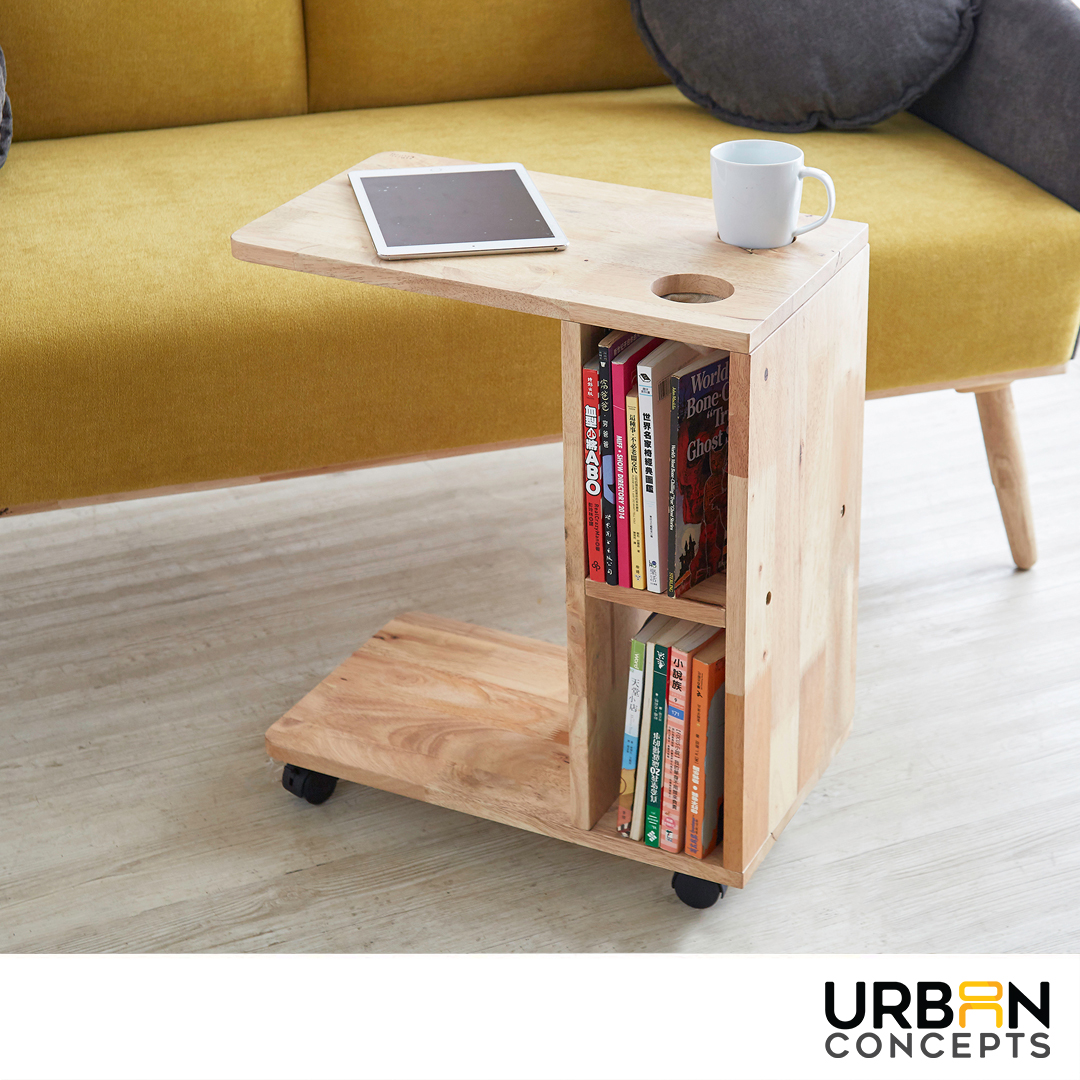 This Travis movable stand is ideal for devices table, sofa side table and bedside table. Offer vertical panels for magazine and book storage and two holes on the top for a cup holder and the other one has a small sack for small-item storage like car keys or tv remote control.