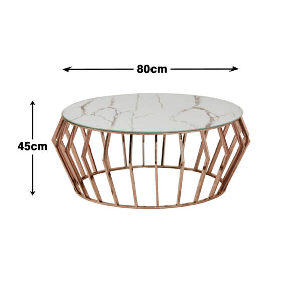 The Tyra coffee table represents a blend of modern style and superior craftsmanship. With polished rose gold legs combine to create a beautiful aesthetic that will elevate any decor.