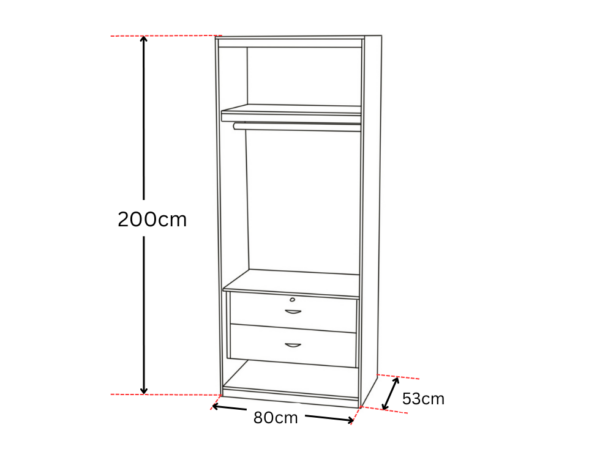 Crafted with practicality in mind, the Welby wardrobe is the perfect choice for those who value both aesthetics and functionality. Its two glass doors provide a clear view of the inside, while the upper and lower shelves offer ample storage space for larger items like blankets, pillows, and folded clothes. The two drawers are perfect for keeping your accessories and other small items secure. The hanger rod is another great feature that ensures your clothes stay organized and easily accessible.